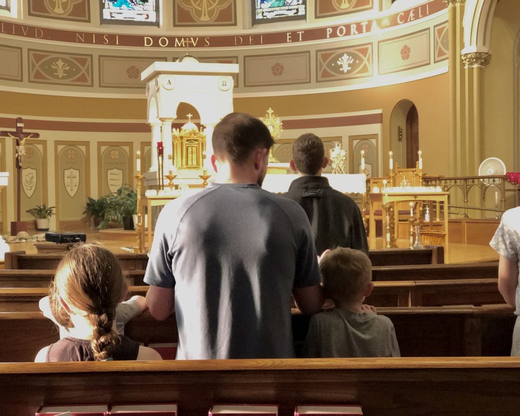 From 11:00-11:10, young children and their caregivers spend time together in Eucharistic Adoration. After this time, drop off your children in Room 250 in the Parish Office building, where they’ll play while the adults have solo time in Adoration.